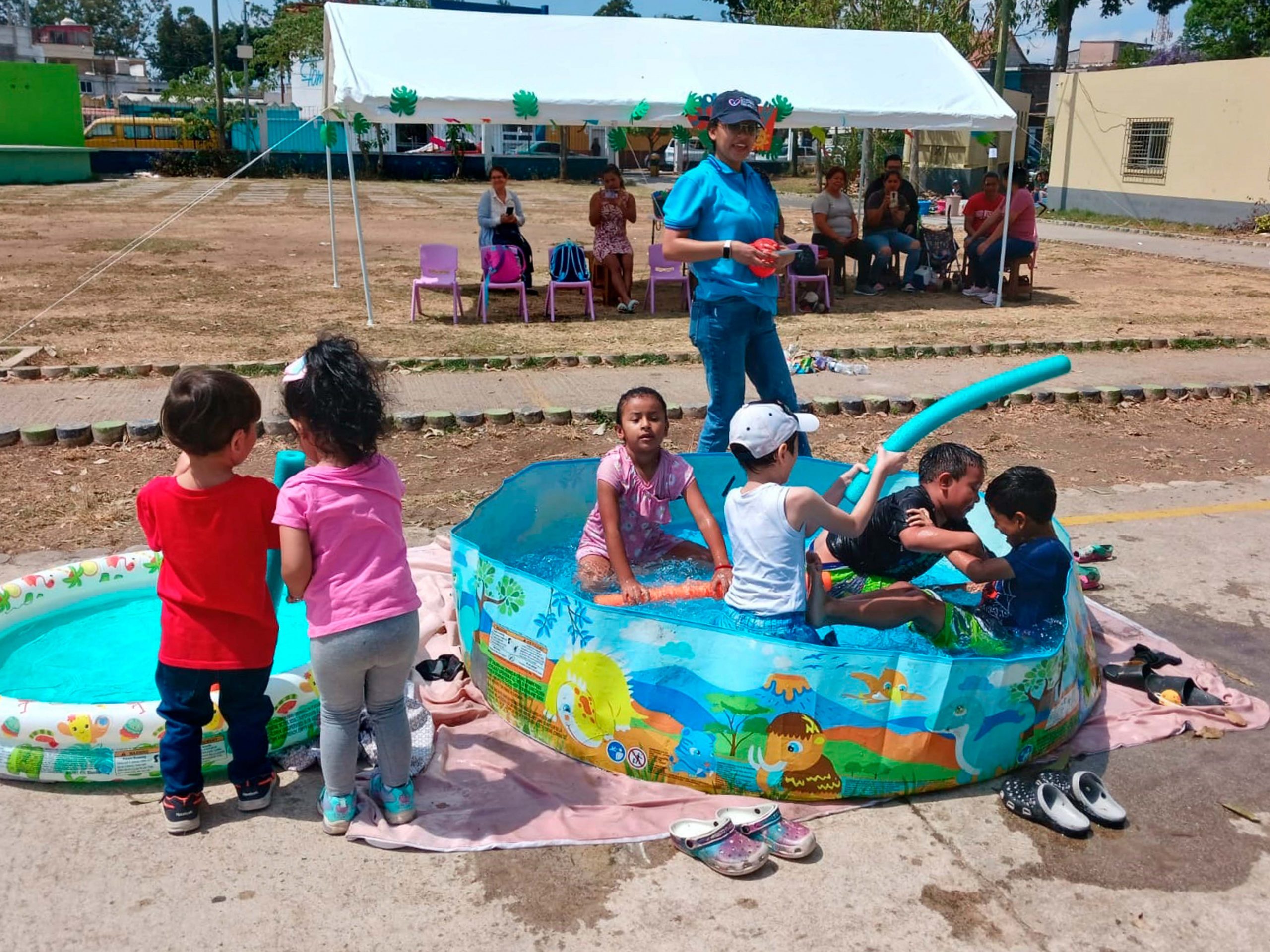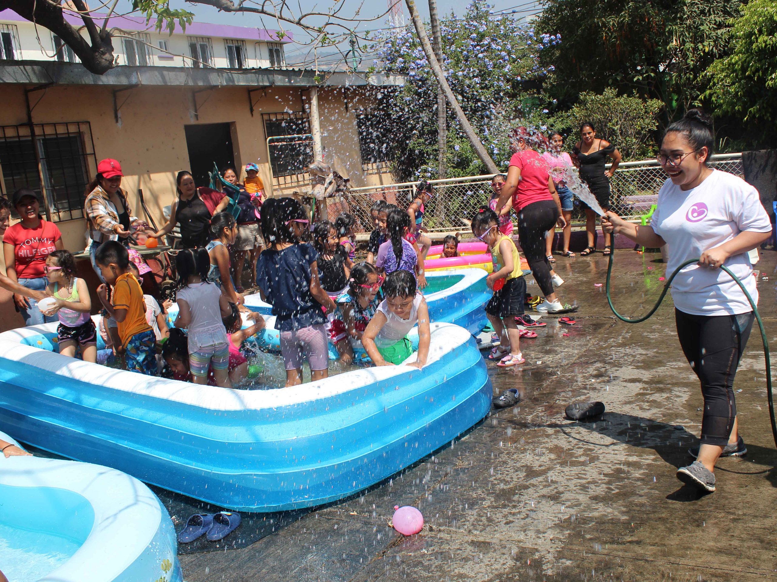 Por su parte, el programa Shekiná junto a familiares, organizaron la actividad en las instalaciones Dispensario Madre Cabrini, con 5 estaciones de juegos con agua, globos, música y piscinas.